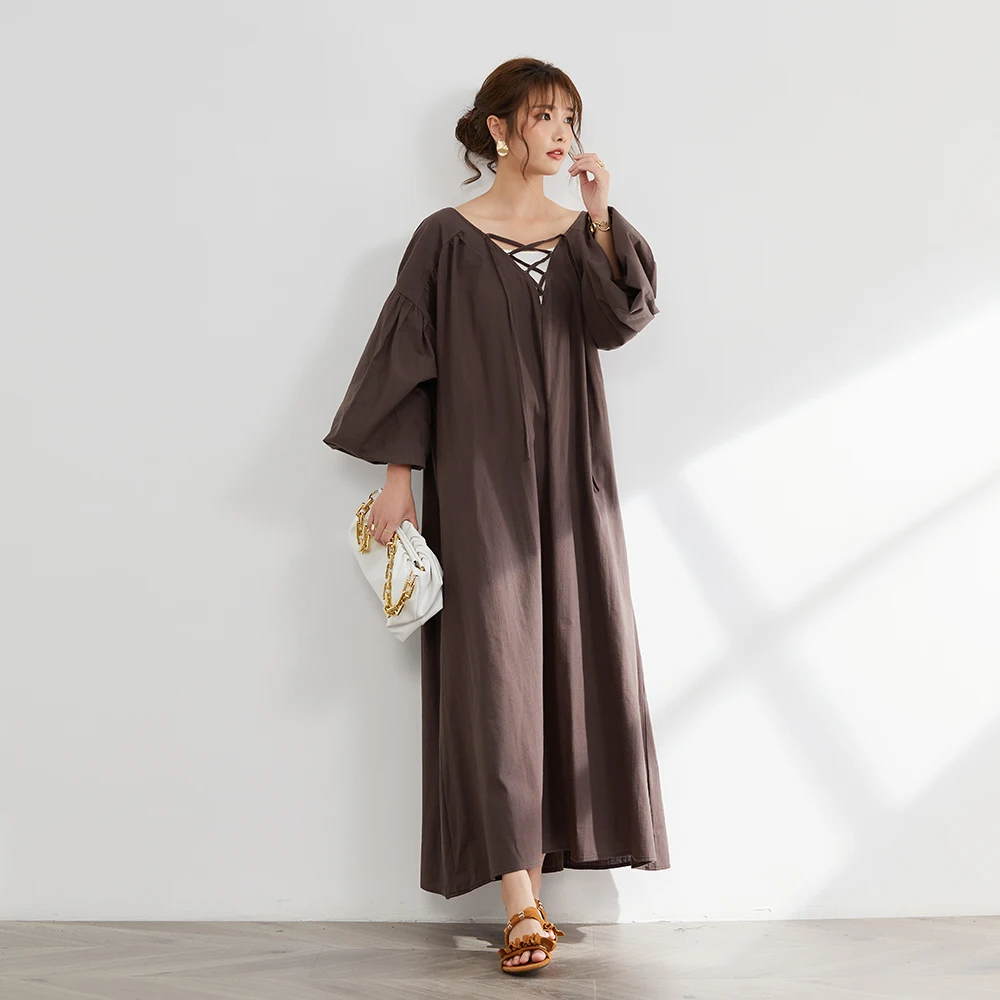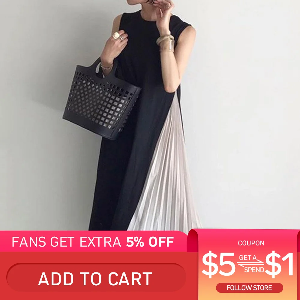 Простое минималистичное платье в корейском японском стиле, повседневное свободное однотонное платье без рукавов с v-образным вырезом, длинное бежевое платье