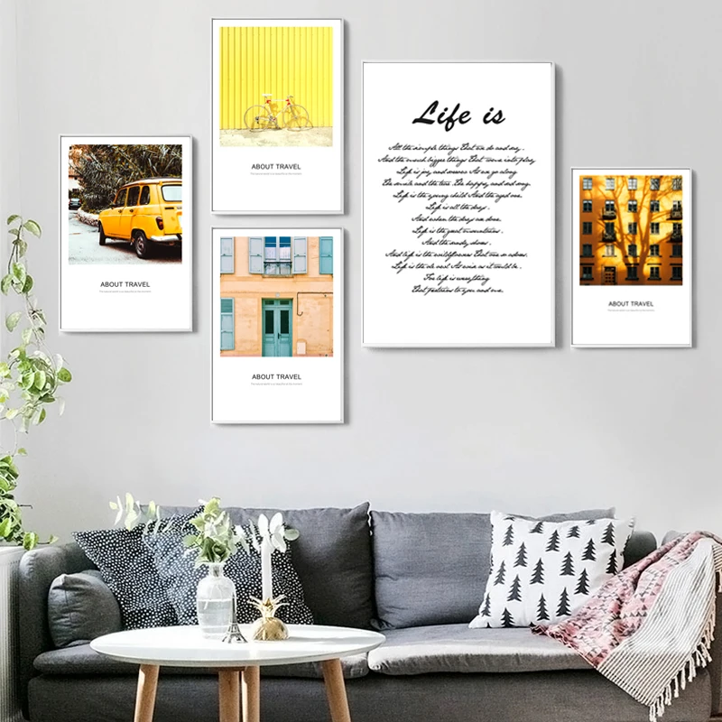 Пейзаж Плакат в скандинавском стиле скандинавский пустынный автобус велосипед синяя дверь настенное искусство холст печать живопись современный декор для гостиной 5-11
