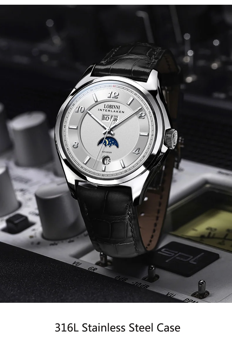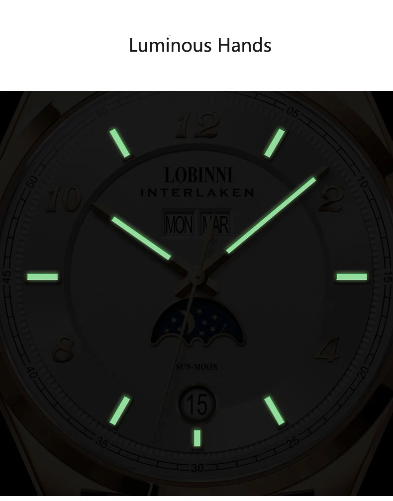 Высокая цена соотношение автоматический механический механизм/Сапфировое Окно/светящиеся руки/фазы Луны