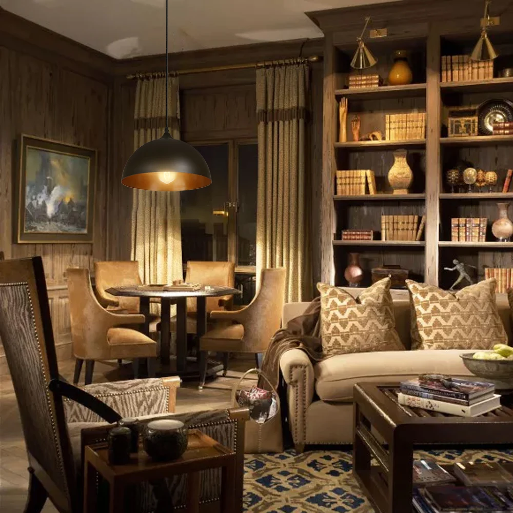 Эти два металлических светильника с подвесками, сконструированные со старыми и промышленными элементами, лампы в элегантной купольной форме дарят приятные ощущения в гостиной за обеденным столом или баром.