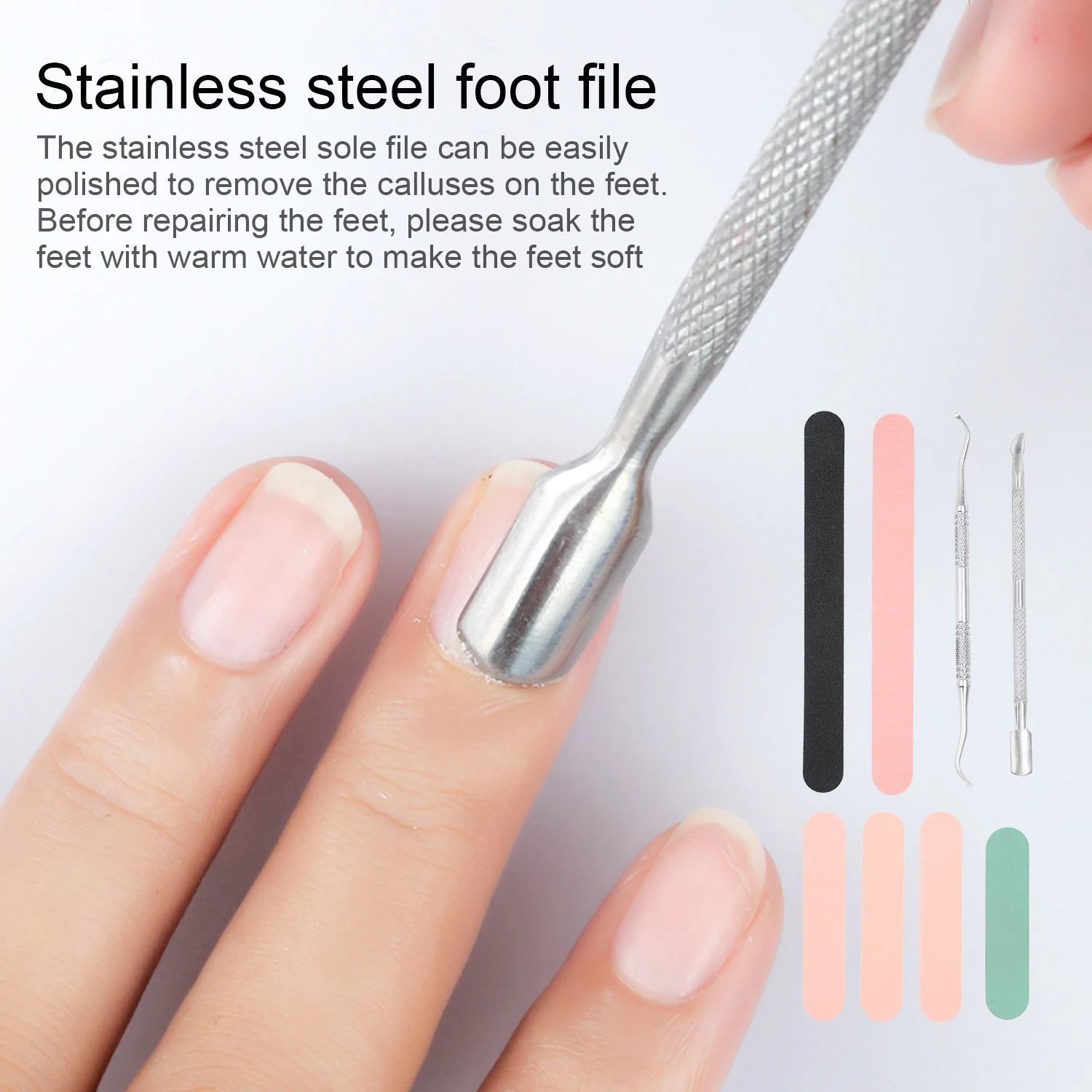 20 шт педикюрный набор для ног Набор-точилка пилочка для ногтей ног натирания скребок пилинг педикюр Ножи инструменты носком отдыха полировки полосы Наборы