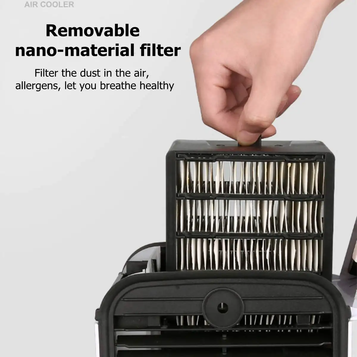 Особенности: 1. 3-зубчатая регулировка скорости ветра:Выберите 3 скорости и Отрегулируйте поток воздуха 2. Естественный ветер:Естественно выпустите прохладный ветер, чтобы вы могли наслаждаться им, когда работаете, спите и выходите. 3. Холодный воздух: Большой емкости резервуар для воды, может использоваться с кубиками льда, рапиды охлаждения, освежающий летний 4. Сильный ветер:Вентилятор постоянного тока с низким уровнем шума, большое всасывание для перемешивания окружающего воздуха, сильный и сильный ветер 5. Увлажняет воздух:Молекулы нано-воды выделяются в воздух, что делает ваше дыхание более гладким и более комфортным для сна. 6. Антибактериальное устройство Blu-Ray:Встроенный синий светильник, убивающий бактерии, эффективно убивает спящие бактерии, и ветер чище и безопаснее 6. Съемный, нано-материал фильтра:Для фильтрации пыли в воздухе, аллергенов, позволит вам дышать здоровым 7. Безопасное отключение питания:Когда бак охладителя воздуха будет открыт, вентилятор немедленно отключится и прекратит работу. 8. Может использоваться в качестве ароматерапевтической машины:Встроенный блок распыления, тонкое распыление позволяет аромату быстро распределяться 9. Встроенный аккумулятор внизу,Прост в использовании, может использоваться на открытом воздухе в течение 2 часов, подходит для пикников, кемпинга, альпинизма и т. д.