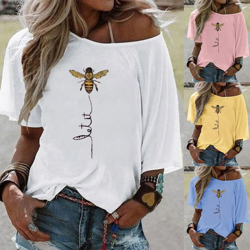 3.КруглыйШея,КороткийРукавС буквенным принтом, Натяжная застежка.Свободный крой, повседневный и цветочный.Он имеет идеальную длину, так что вы можете использовать его в ваших штанах или шортах.Холодное плечоДизайн, делает вас выглядеть лестно и модно.