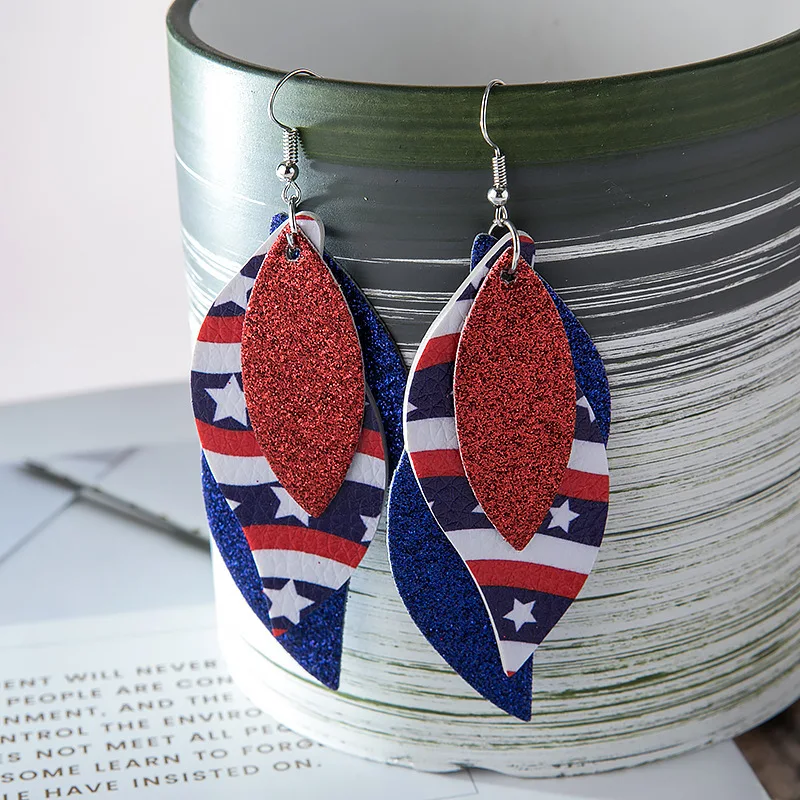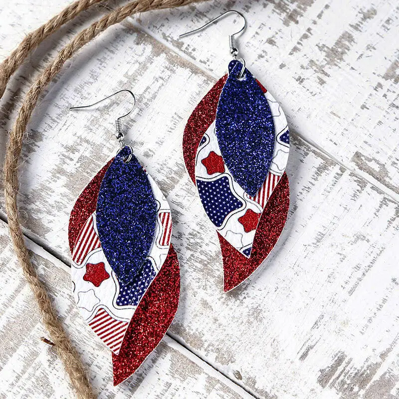 1. День Независимости, серьги, 3-слойная пышная кожа серьги с дизайном с изображением американского флага.