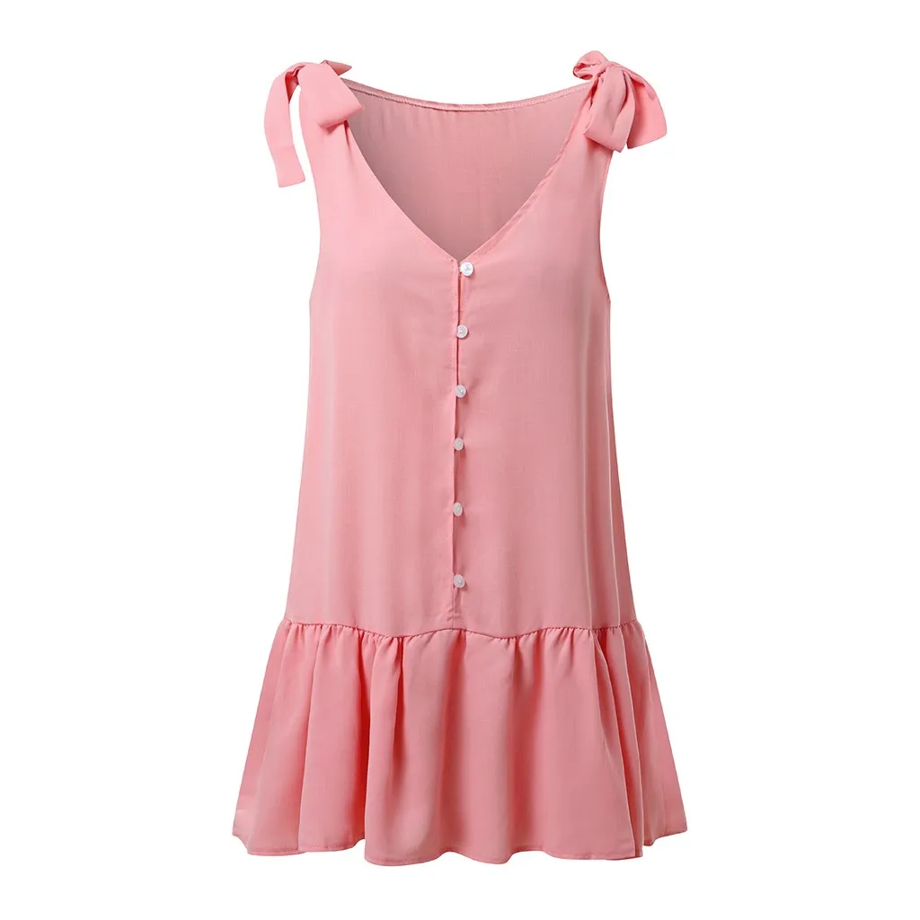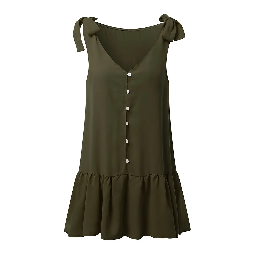 Женское однобортное мини-платье с v-образным вырезом и коротким рукавом