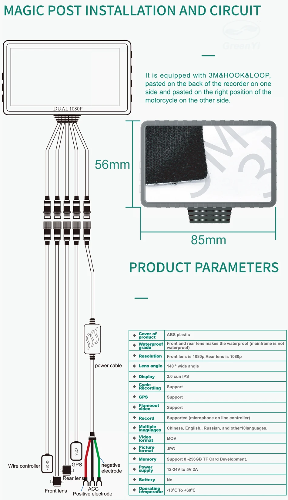 Источник питания транспортного средства, неограниченный срок службы батареи, возьмите ключ ACC для мотоцикла, чтобы взять питание, начните автоматическое загрузочное видео для мотоцикла, выключите машину, автоматически задержите выключение, чтобы сохранить видео, не нужно вручную удобнее.