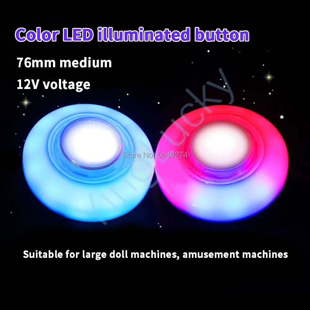 10 шт. 76 мм Светодиодная аркадная Кнопка 12 В светодиодные кнопки для кукольной машины, развлекательной машины, качели автомобиля