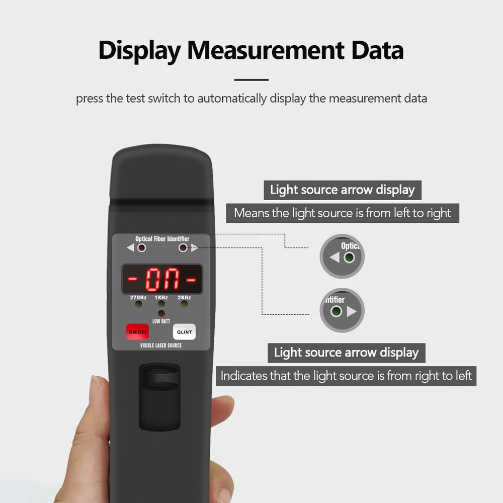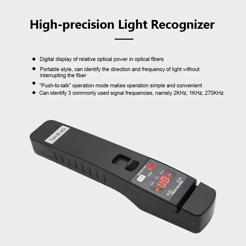 Определение тона, идентификатор оптического волокна может обнаруживать оптические сигналы в сигнале тона фиксированной нагрузкой, 270 Гц, 1 кГц и 2 кГц, для определения определенного оптического волокна, можно быстро найти необходимое волокно.