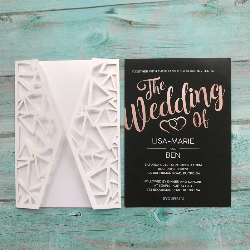Для друзей 30 шт. новейший трехсторонний узор лазерная резка свадебные приглашения по индивидуальному заказу Пригласительные открытки