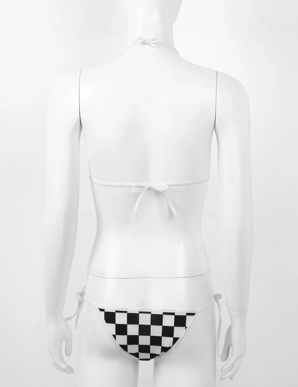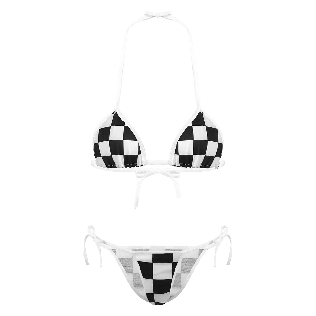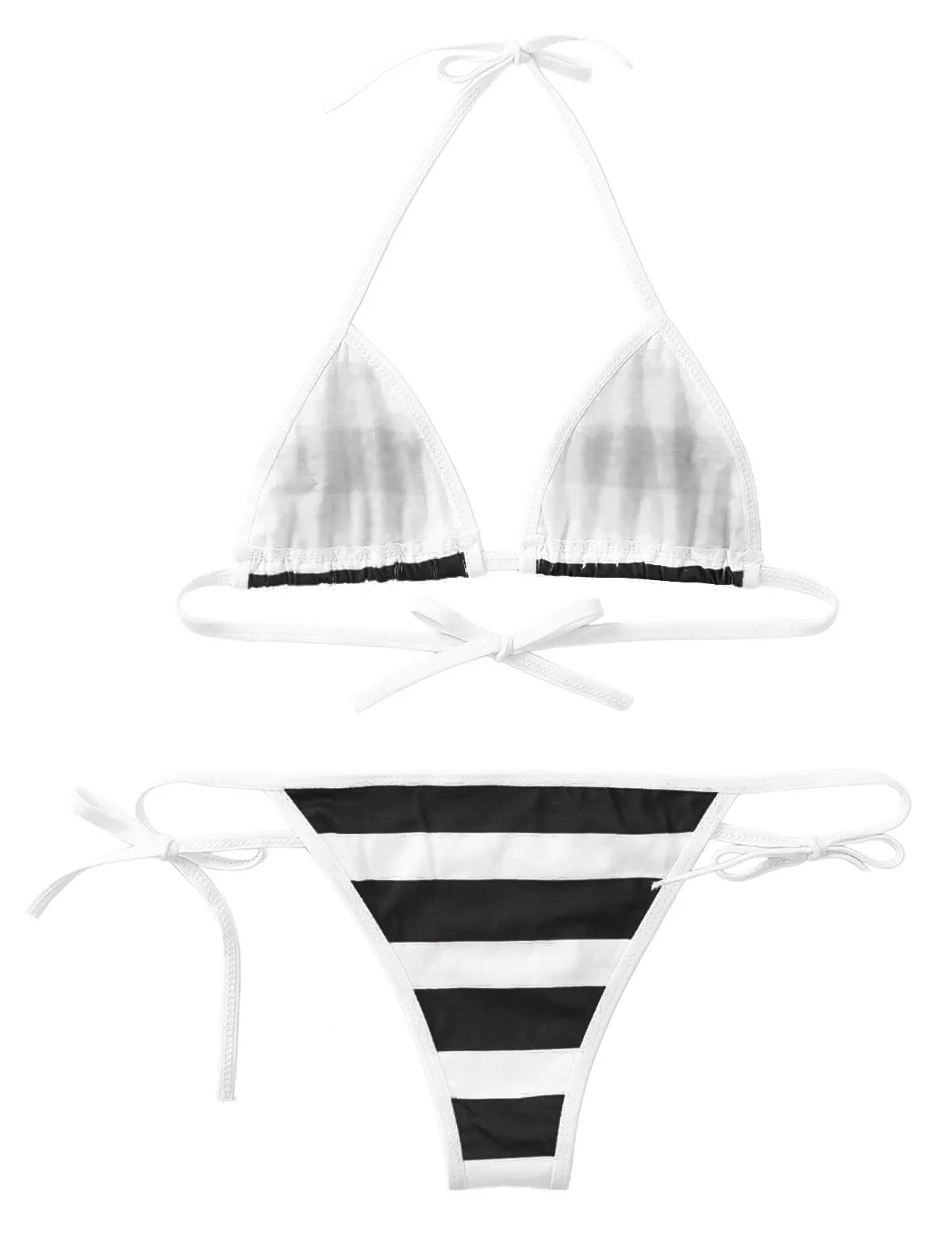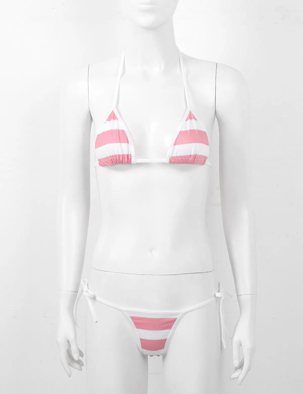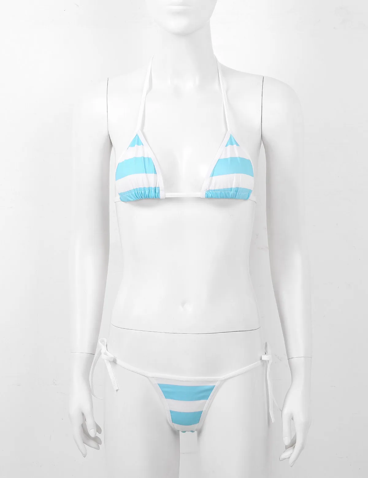 Минимальный охват, треугольный бюстгальтер с лямкой на шее, топы с трусиками-стринги, дизайн с завязками, можно регулировать, чтобы соответствовать вашему размеру.