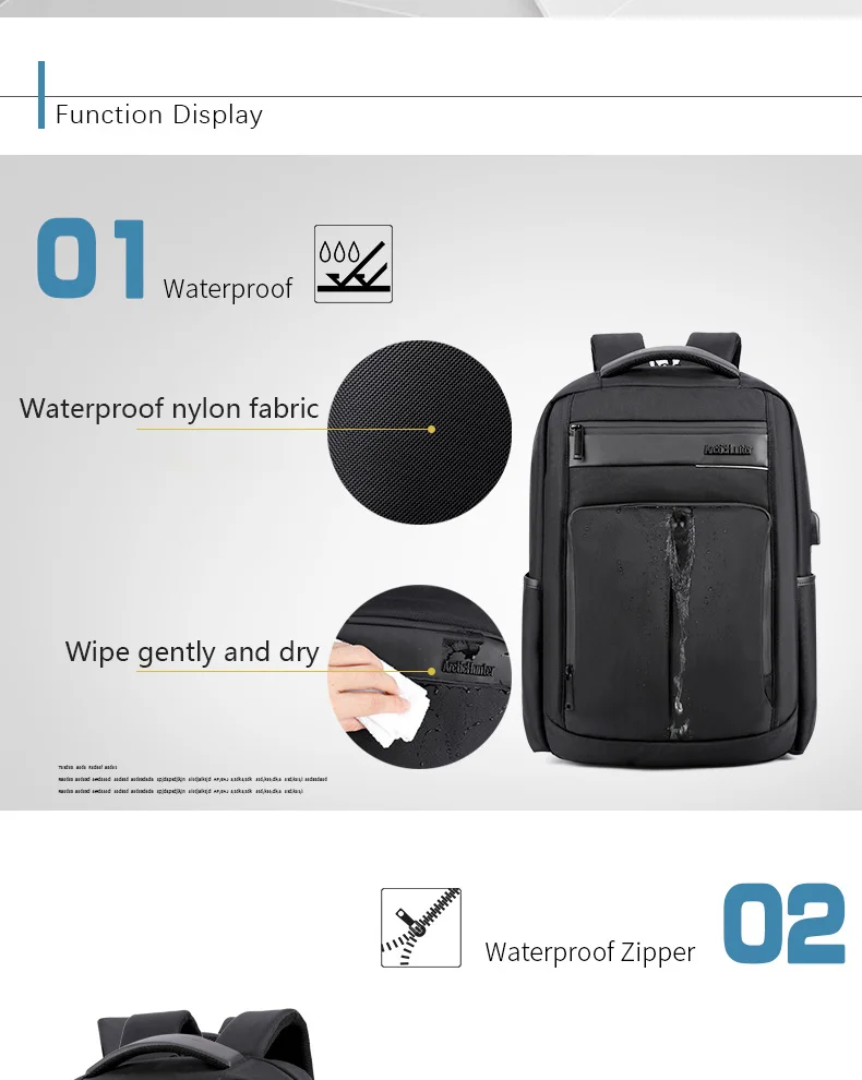 Арктический Хантер 15,6 дюймов рюкзак для ноутбука для Для мужчин Водонепроницаемый зарядка через USB сумка школьные сумки для подростков пакет Бизнес Bagback Mochilas