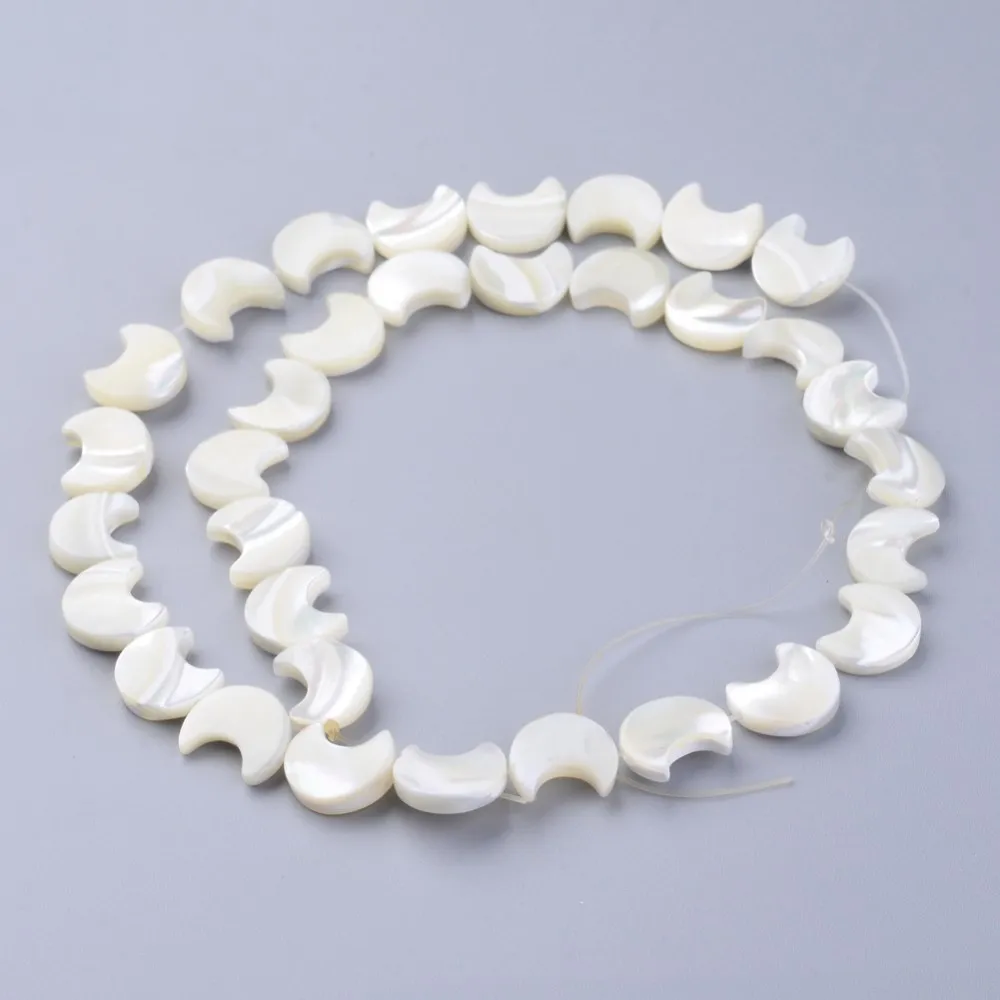 5 нитей натуральных белых ракушек, Перламутровые Бусины, луна, белый