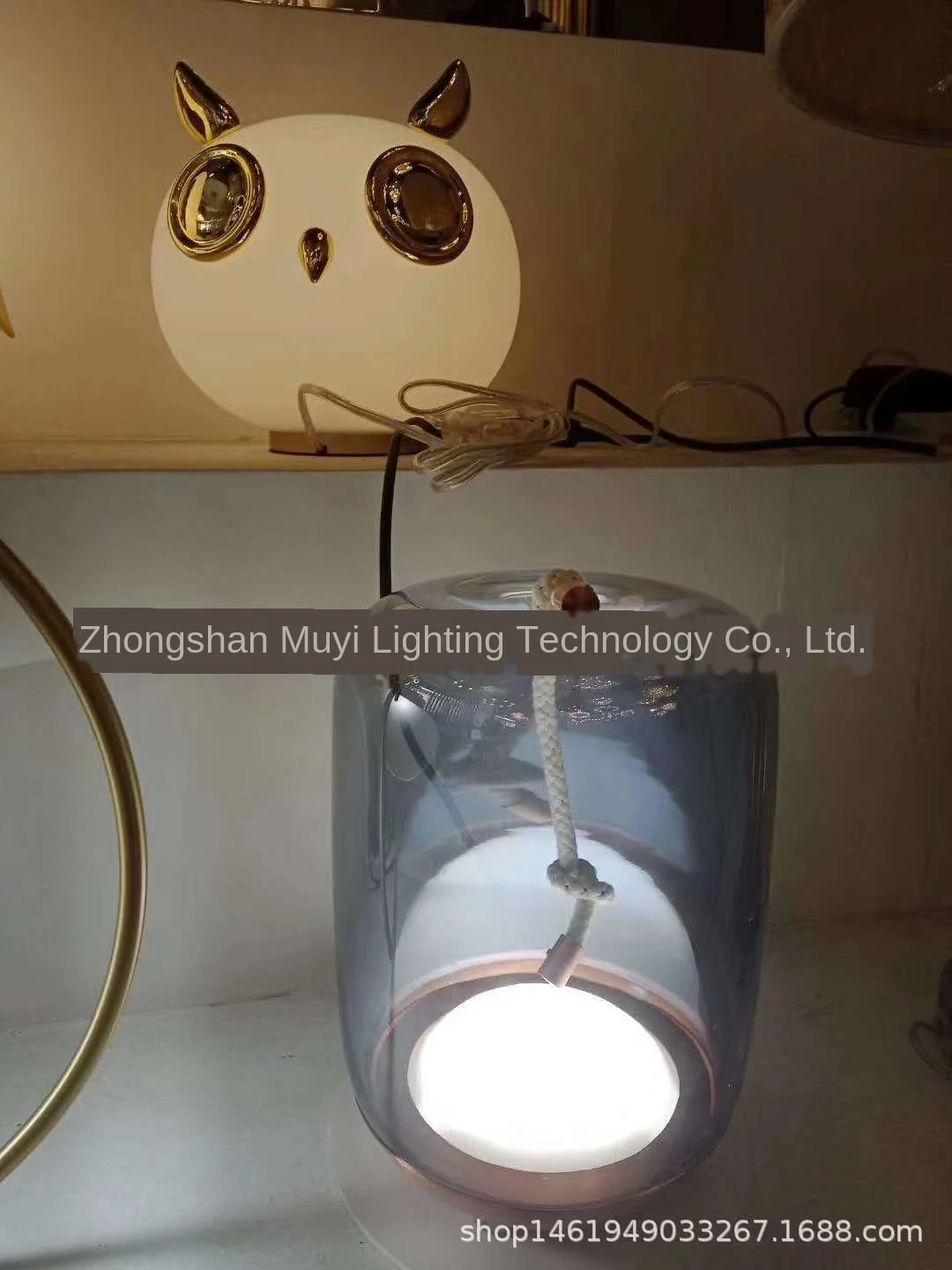 Светодиодная маленькая настольная лампа из пеньковой веревки с дымчатым серым стеклом для гостиной, спальни, 2019