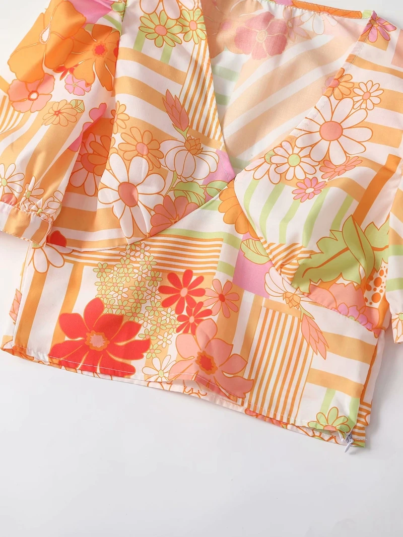 Женская блузка в клетку с узлом однотонная Свободная на пуговицах коротким