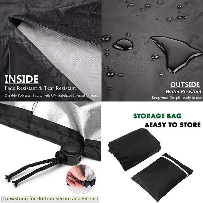<Водонепроницаемость: плотное и прочное покрытие из ПВХ с простроченными швами, эффективно удерживает вашу пожарную яму полностью сухой, водонепроницаемый чехол для пожарной ямы.
