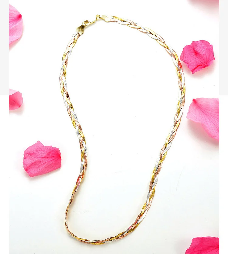 Итальянская 925 пробы Серебряная Трехцветная позолоченная нить плетение ожерелье-чокер