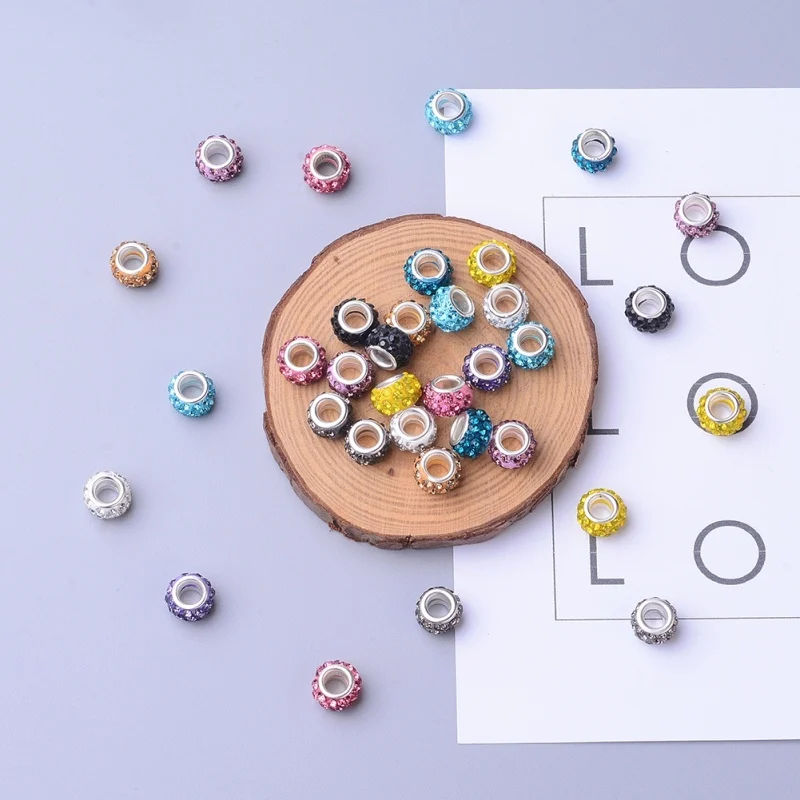 100 шт./кор. разноцветный Полимерная глина Стразы бусины Европейские Бусины с большим отверстием бусины для изготовления ювелирных изделий 10 ~ 12x7 ~ 8 мм