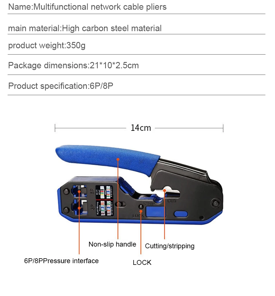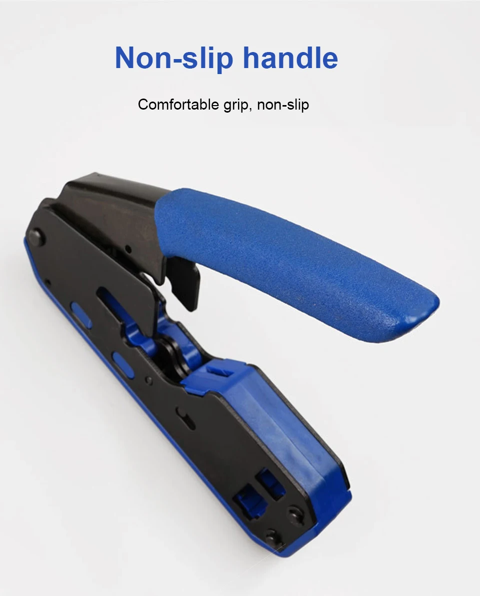Компактный, прочный дизайн и высокое качество. Легко обжимать с помощью силы руки. Совместим со всеми разъемами RJ45 Cat 6/Cat 5e/Cat 5 и RJ12/11, а также со всеми стандартными модульными вилками, за исключением AMP. Встроенный замок безопасности для удобного хранения. Компактный, прочный инструмент предназначен для быстрой и легкой установки. Его нескользящая ручка с желобками для пальцев обеспечивает надежное и удобное сцепление, а обжимной Механизм прямого действия требует только минимального усилия руки. Когда вы закончите, замок в стиле пистолета держит инструмент плотно закрытым. Обжимает 6Pin и 8Pin RJ45 Cat6/Cat5e/Cat5 разъемы. Передняя сторона завершает контакты; Задняя обжим внешнего заземления. Завершается до указанных в отрасли высот обжима. Нескользящая ручка и пазы для пальцев обеспечивают надежное сцепление. Замок в стиле пистолета надежно закрывает инструмент, когда он не используется.