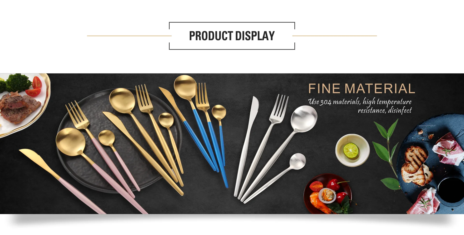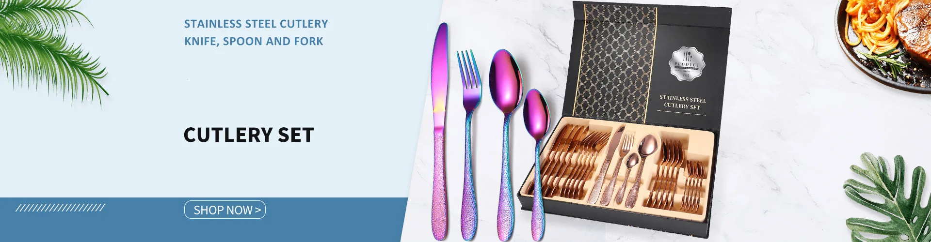 Simple Design The design of this cutlery set is simple and modern. The simple shape combined with the gentle curvature of the body itself already gives you a high quality and a solid feel. With the excellent coating it fits perfectly with your table decoration.
