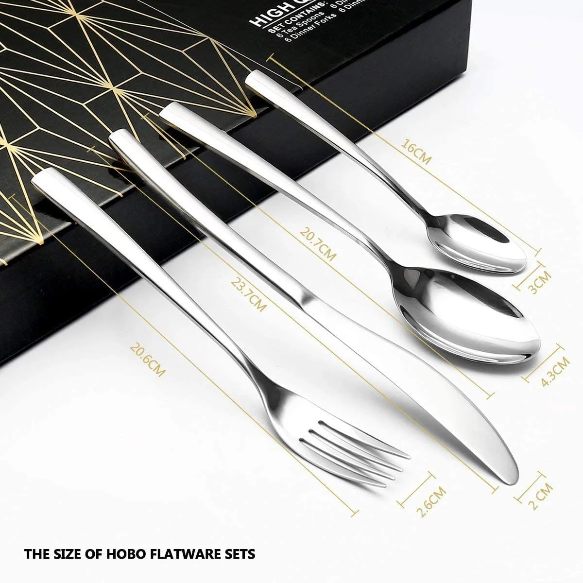 【 SILVERWARE SET FOR 6】TONG GOODSHNEG 24 piece silverware set includes 6 each: Dinner Spoon, Dinner Fork, Dinner Knife, Teaspoon, Packaged in a nice gift box, Perfect gift for Housewarming, Thanksgiving, Christmas, etc. 【SHIGH QUALITY SILVERWARE】This 24pcs silverware set is made of premium stainless steel which ensures your health, Sturdy enough for basic daily use, Rust resistant and durable for years to come. 【MODERN FLATWARE SET】The silverware set has a simplicity and modern design language, the smooth curvy body give it a unique texture, gives it a luxurious and elegant look to suit any occasions. It also has the ergonomic design for great comfort in your hand. 【PERFECT CHOICE FOR GIFT】The silverware set is very modern and premium, it is also packed with a very nice gift box, all these features are making it perfect to be gifted to your friends and family at holidays and events like Housewarming, Thanks Giving, Wedding, Christmas etc. 【NICE WEIGHT】Great weight size of eating utensils, Our silverware set have a nice weight to them, not too heavy and not too light, Well designed to provide good grip for both adults and big children. Thank you for choosing TONG GOODSHNEG. Wish you enjoy a HEALTHY & GREEN LIFE with our products. This silverware set adds stylish elegance to every dinner table and is sure to bring style and flair to every mealtime. This 24pcs flatware set with simple design for an eye-catching modern look make your daily dining extraordinary and create a decent environment for any special event. Its mirror polished style will decorate your table nicely and attract your family and friends. Its rust and dullness resisting nature will maintain its gleam over time, making it just the right cutlery investment for you! A COMPLETE CUTLERY SET FOR 6 PEOPLE The 24-piece flatware set suitable for many dishes and courses, the flatware set contains: 6 Dinner Knives 6 Dinner Forks 6 Dinner Spoons 6 Tea Spoon Makes a great choice for most families, ideal for kitchen, hotel and restaurant. Features an elegant gift box, perfect choice of gift for any holiday season such as St-Valentine, Thanks Giving, Wedding, Christmas etc. Have an elegant dining experience with this perfect shaped and balanced cutlery set. This is the most enjoyable gift of life. HIGH QUALITY STAINLESS STEEL High-quality stainless steel ensures there will be no rusting and our cutlery sets are completely corrosion resistant. All our flatware is designed for both beauty and durability. EXQUISITE CRAFT Serrated knife blade easy to cut food efficiently, Ergonomic handle with sleek design ensures good touch feeling, Help you enjoy your meal like never before. Mirror finished surface, Simple appearance with no redundant annoying decoration, Smooth edge no rough spots, Proper gauge thickness and weight to hold comfortably. ELEGANT AND CLASSICS DESIGN The classic cutlery set features a timeless design that will never go out of style; it will add a touch of class to your dining room. Constructed by high quality rust-resistant stainless steel, Durable and healthy for everyday use, Dishwasher Safe.