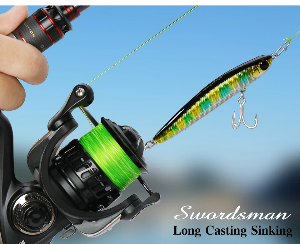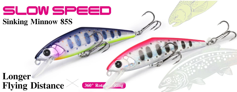 4. Плавная Тонущая модель с фиксированным центром тяжести. Благодаря отличному расстоянию полета и горизонтальному падению, сопровождаемому катками, вы можете смело захватывать форель, до которой Вы не могли дойти.
