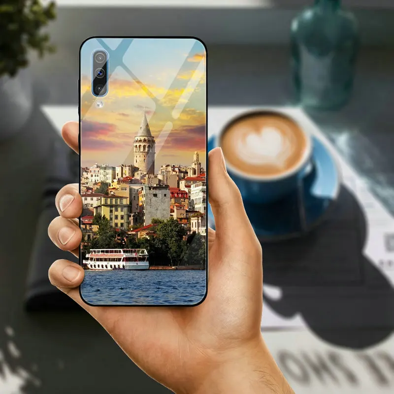 Чехол из закаленного стекла для Samsung Galaxy A6 A8 A9 A10 A20 A30 A40 A50 A70 A80 A90 S8 S9 S10 Plus Турция Стамбул Sceneary Building черный чехол для телефона противоударный защитный чехол для телефона