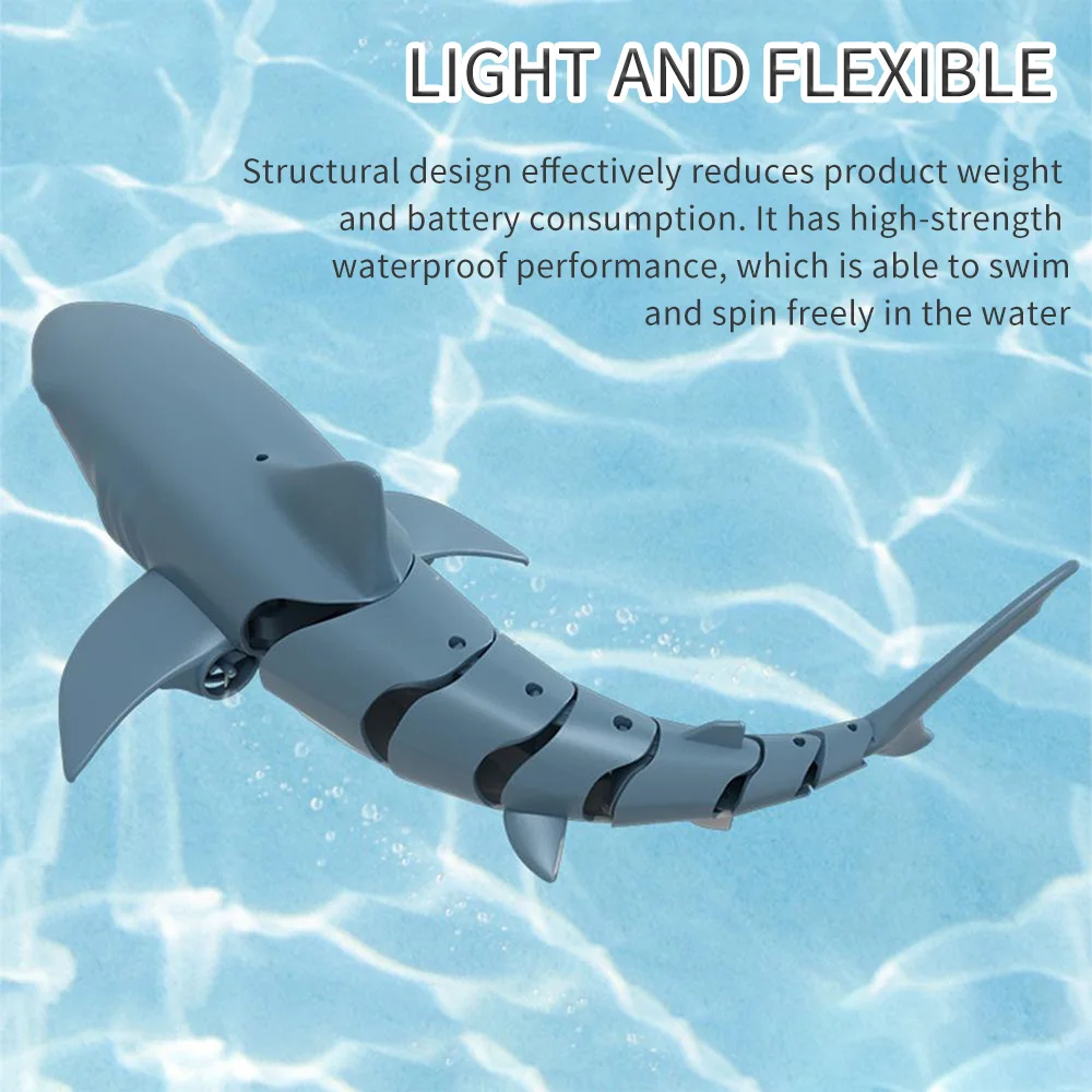 Маленькие радиоуправляемые рыбы имитируют настоящую акулу. Он имеет подвижные соединения, которые могут показать различные пути активности в воде, плавание быстрее и гибче. 2,4 ГГц передатчик позволяет вам никогда не будет радиопомех. Водонепроницаемый дизайн позволяет играть без опасений и веселее.