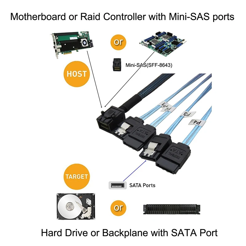 1 x внутренний кабель HD Mini SAS (SFF-8643 хост) на 4x SATA (целевой) кабель жесткого диска