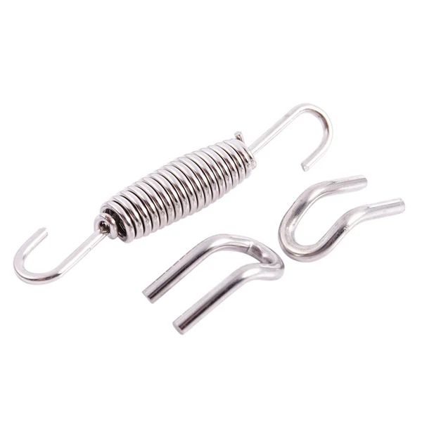 Пружины имеют универсальный дизайн. Перед покупкой внимательно проверьте расстояние монтажной петли пружины на выхлопной системе. Если монтажные петли слишком далеко или узки друг к другу, сварочные крепежи будут задействованы для изменения петель, чтобы эти пружины подходили к выхлопной системе.