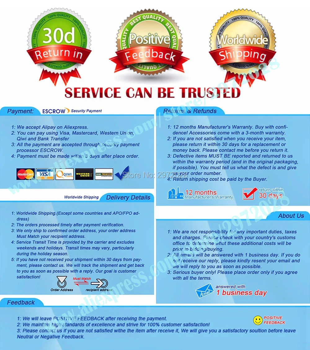 - Если вам нужен массовый заказ или Прямая доставка, пожалуйста, свяжитесь с нами, и будет предложена Лучшая цена и сервис.