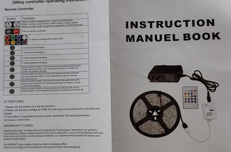 Посылка будет иметь руководство пользователя, Показано, как использовать контроллер синхронизации музыки и светодиодный светильник RGB, как их подключить ....