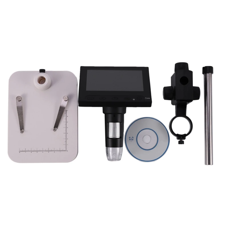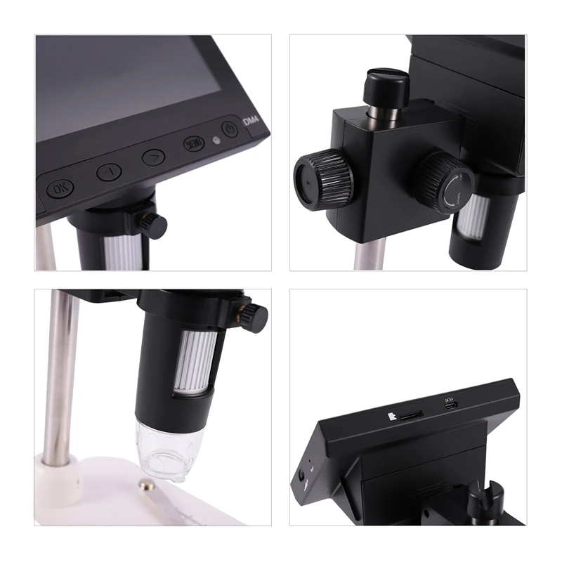 Этот цифровой микроскоп с 4,3 дюймов ЖК-дисплей дисплей, 1000X nification и регулируемая высокая яркость 8 светодиодов белого цвета. Это поможет вам видеть и анализировать крошечные предметы в микроскопических деталях. Поставляется с держателем для поддержки микроскопа.