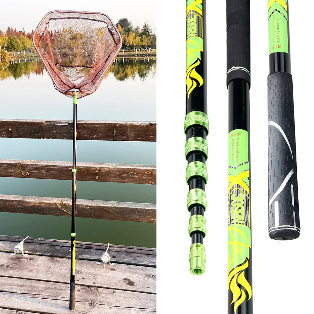 JOSBY Складная рыболовная сеть углерода полюс 2,1 м 4! Ультралегкие складные телескопическая посадка рук чистая полюс рыболовная сеть Шестерни