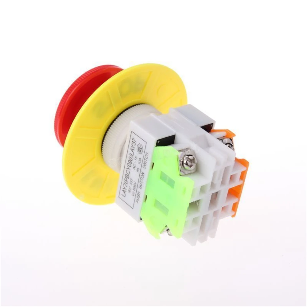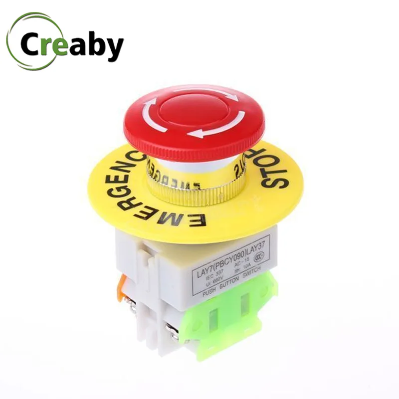 Характеристики: 4 клеммы, 22 мм монтажное отверстие, 1NO + 1NC Тип контакта, красный гриб аварийный стоп фиксатор кнопочный переключатель с желтой крышкой. Широко используется для контроля электромагнитного стартера, контактора, реле и других электрических цепей автоматического управления.