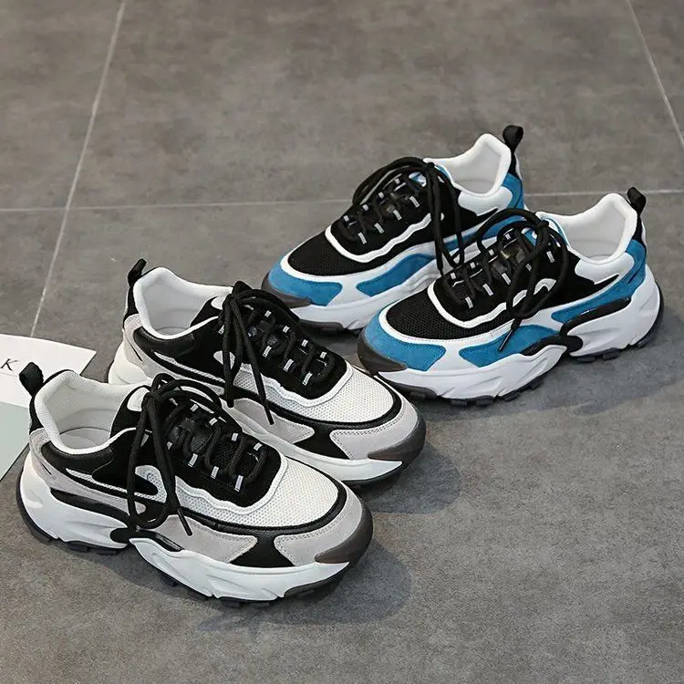 Женские кроссовки на массивной платформе Ulzzang разноцветные вулканизированные