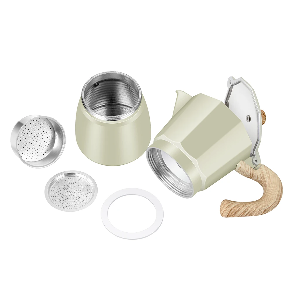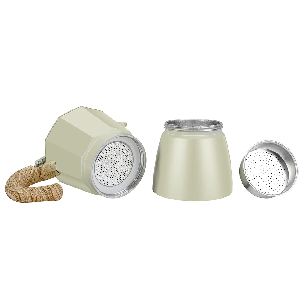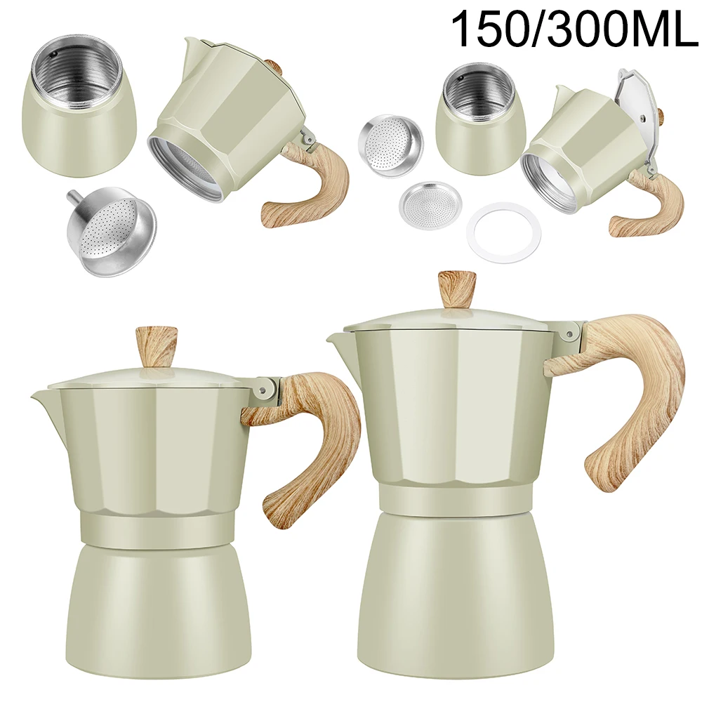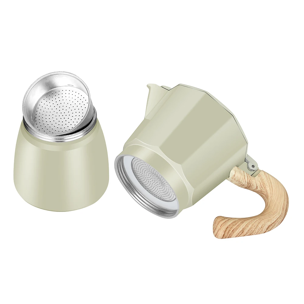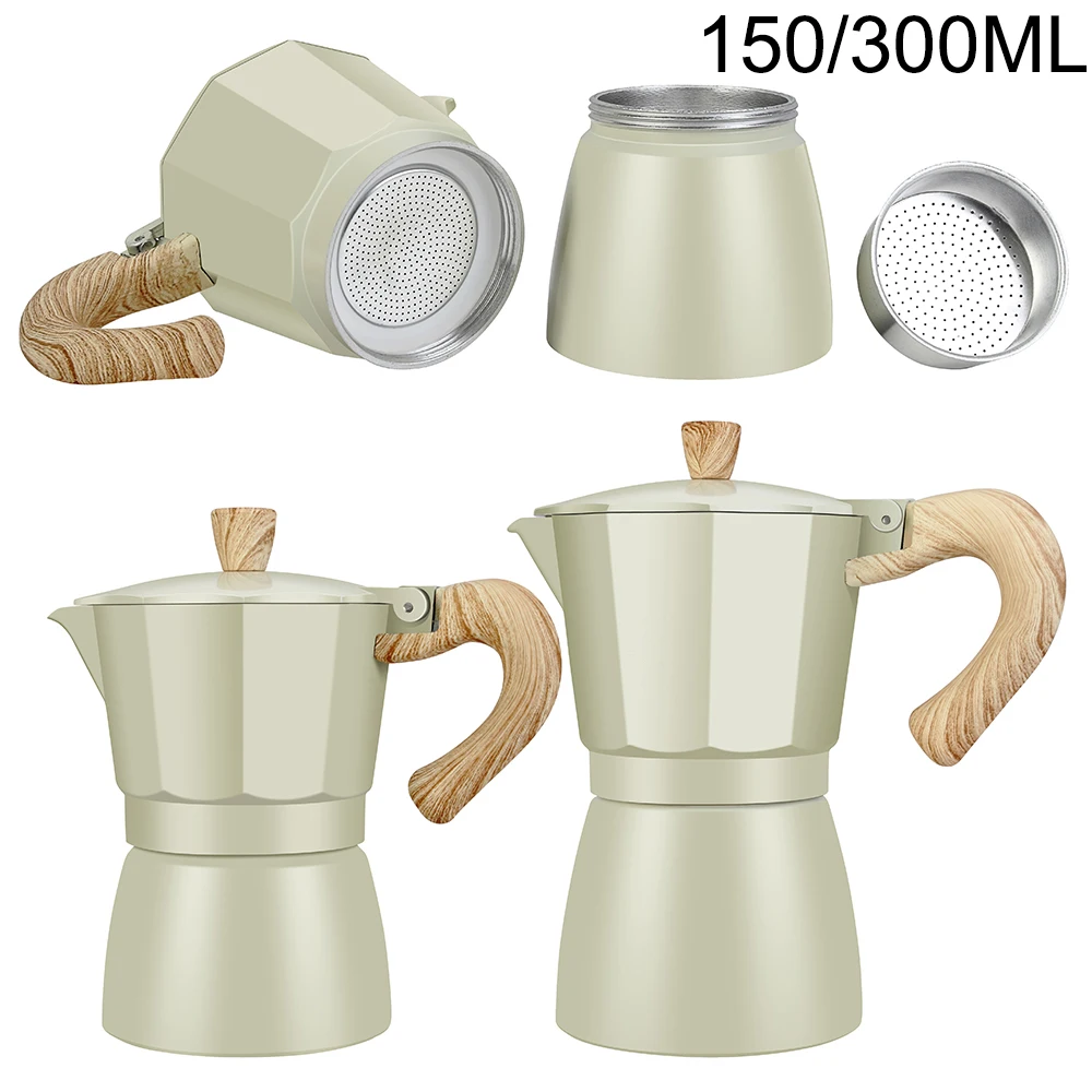 * Кастрюля Moka-двухэтажная структура, расположенная в нижней части кипения в воде после кипения, он оснащен порошком acoffee сетчатого фильтра в верхней половине горшка.