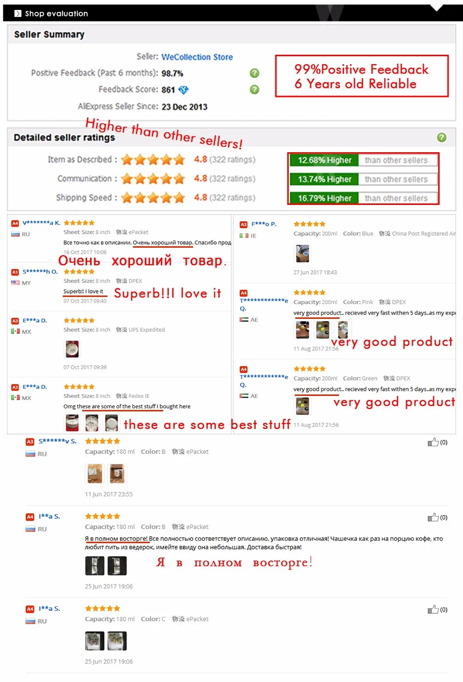 Магазина WeCollection Store работает с 24.12.2013. его рейтинг составлет 94.37 баллов из 100. В избранное добавили 6598 покупателя. Средний рейтинг торваров продавца 4.8 в продаже представленно 411 наименований товаров, успешно доставлено 1462 заказов. 71 покупателей оставили отзывы о продавце.
