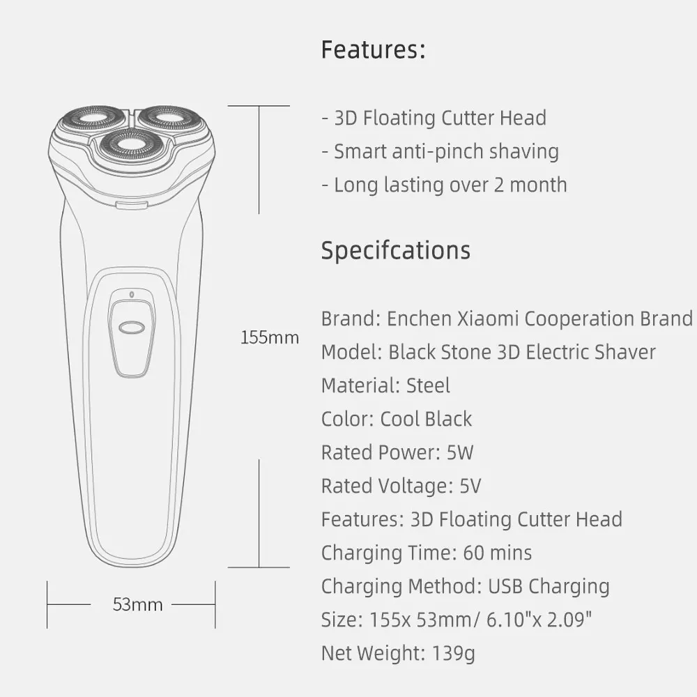 ● Умный дизайн дисплея интимное напоминание о различных операций, дисплее питания, подсказках для зарядки, подсказках для стирки и т. д. ● TYPE-C usb-интерфейс для зарядки может передавать зарядный кабель с мобильными телефонами, компьютерами, банками питания, usb-розетки и т. Д. Могут питаться, ежедневно и путешествовать легко и портативно. ● Он искусно построен, плотно прошит и прочен. Корпус изготовлен из Тайваньского АБС-пластика Chi Mei, а крышка головки изготовлена из высокопрочного литья под давлением для ПК в немецком стиле Bayer. ● Всплывающий шпатель задней части бритвы оснащен всплывающим шпателем, который можно открыть одним щелчком, что облегчает обрезку длинных бороды.