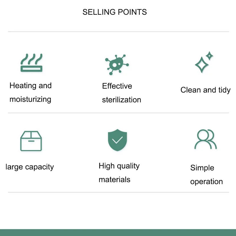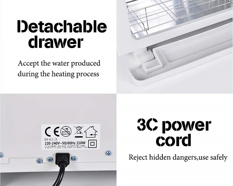 2. Высокое качество: Этот стерилизатор для полотенец имеет бесшовную внутреннюю камеру из нержавеющей стали, он прочный и антикоррозийный, может одновременно поддерживать постоянную температуру.