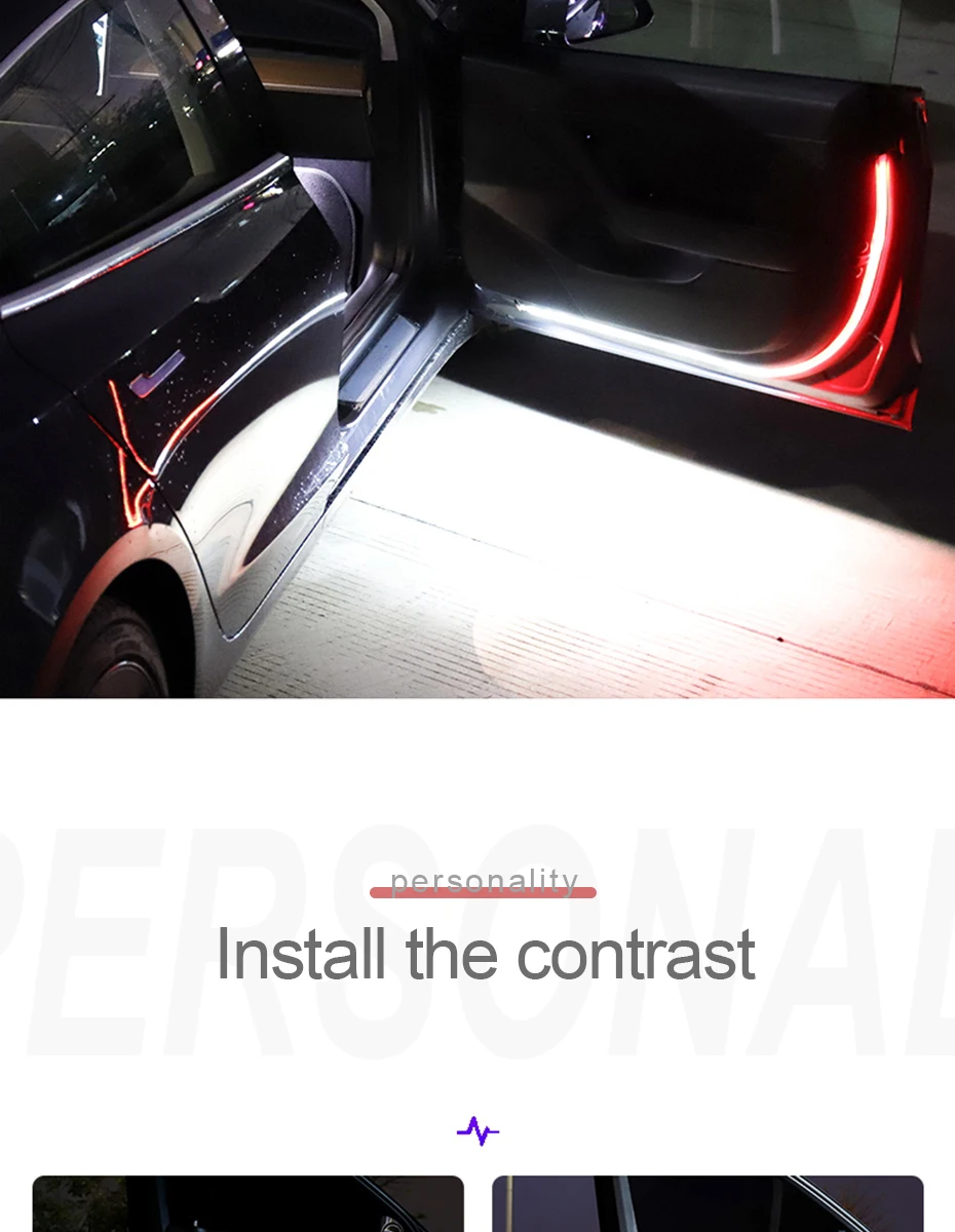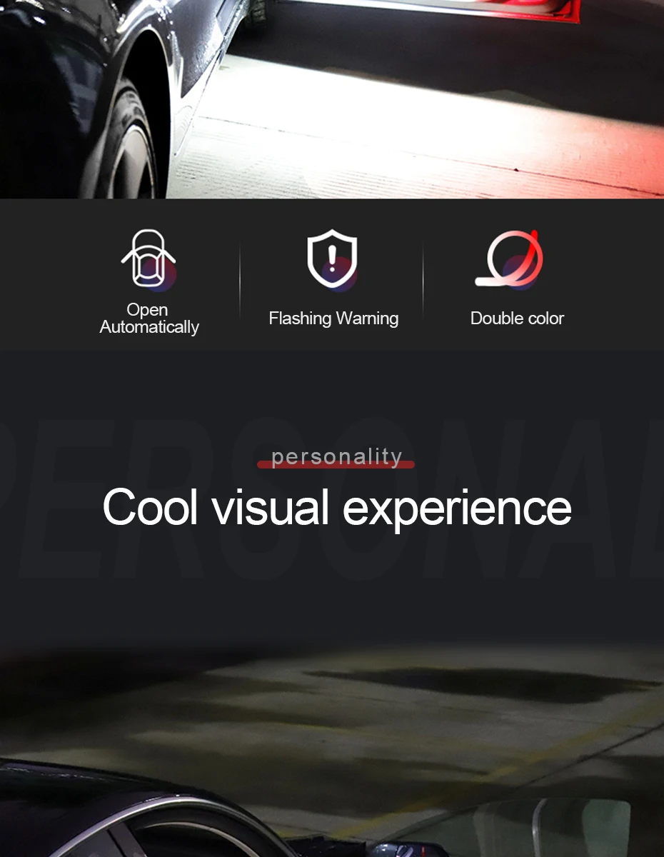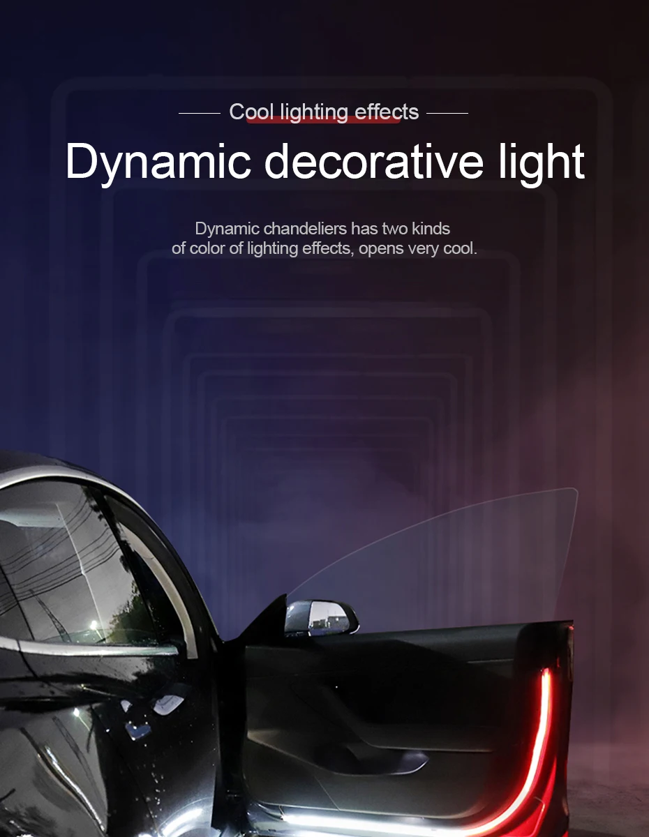 3. Световая полоса загорится с открытием автомобильной двери, с эффектом стробоскопического эффекта, чтобы напомнить пассажирам, чтобы улучшить безопасность.