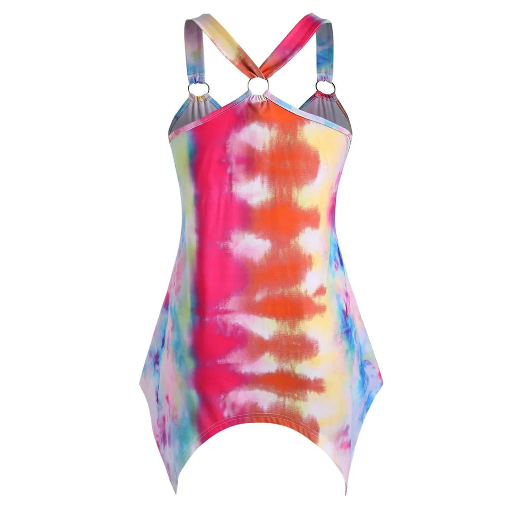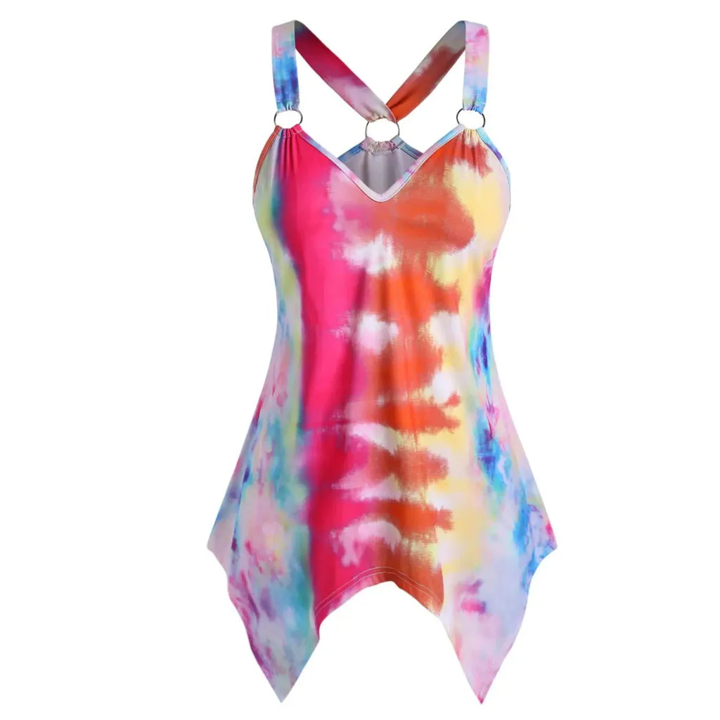 Женская мода v-образным вырезом размера плюс o-кольцо галстук-краситель платок майка блузка