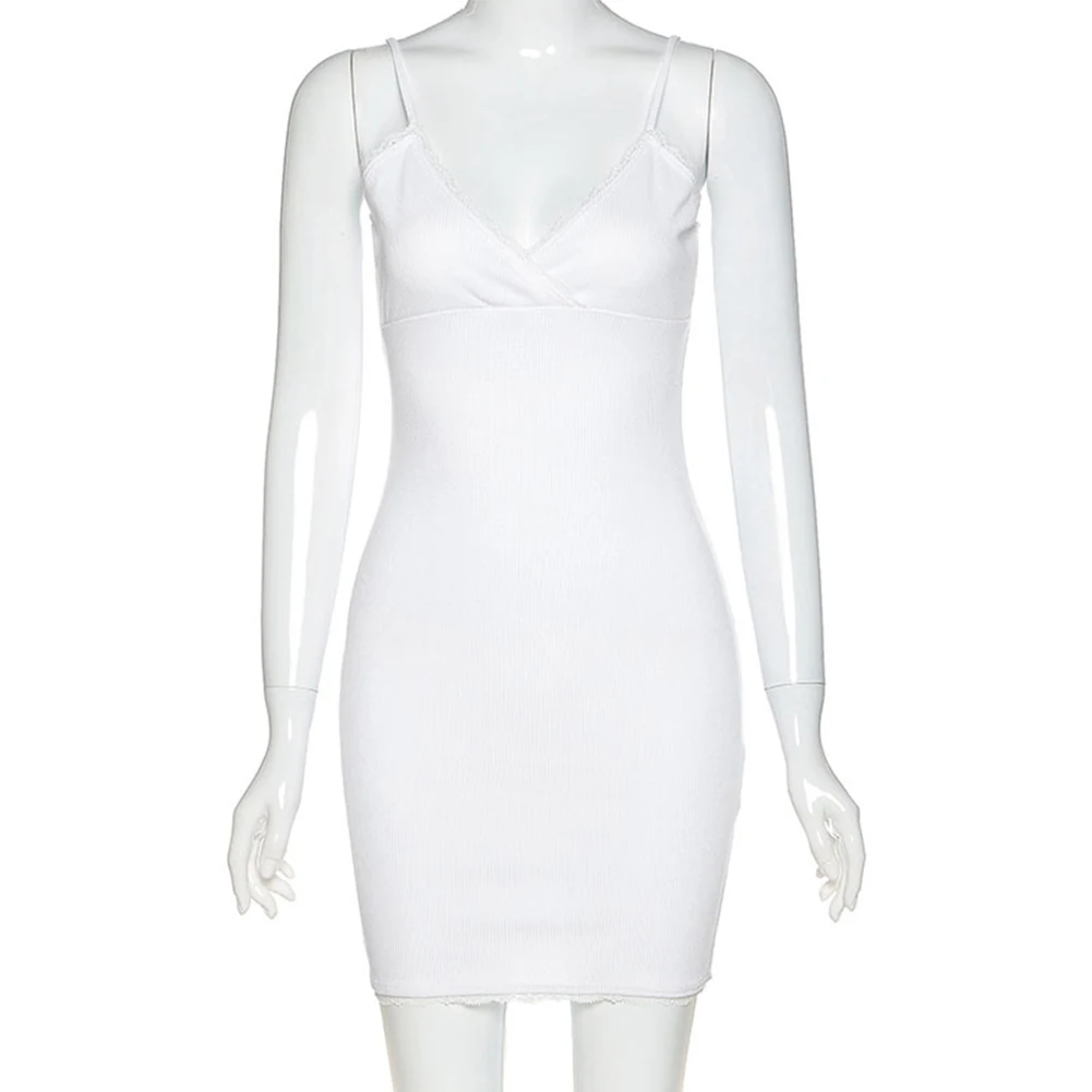 Платье с сексуальными тонкими бретелями, без рукавов, однотонное черное или красное, с низким вырезом горловины, облегающее бедра, подходит для весны и лета