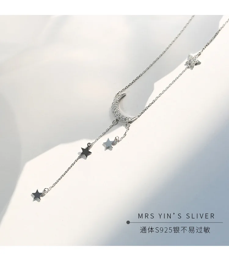 Chuyau 925 стерлингового серебра с изображением Луны и звезд, ожерелье серебро 925 цепочка колье для женщин, хорошее ювелирное изделие, лучший подарок
