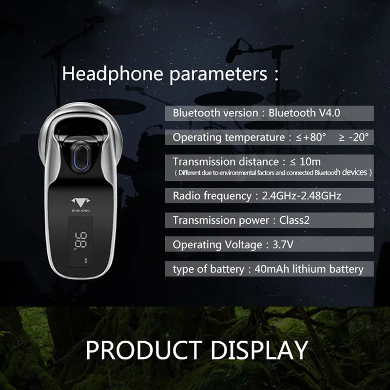 D: светодиодный экран: мониторинг состояния зарядки в режиме реального времени, когда наушник находится на базе, дисплей питания будет отображать мощность в режиме реального времени, И будет погашено ухо 10S. Точный контроль мощности.