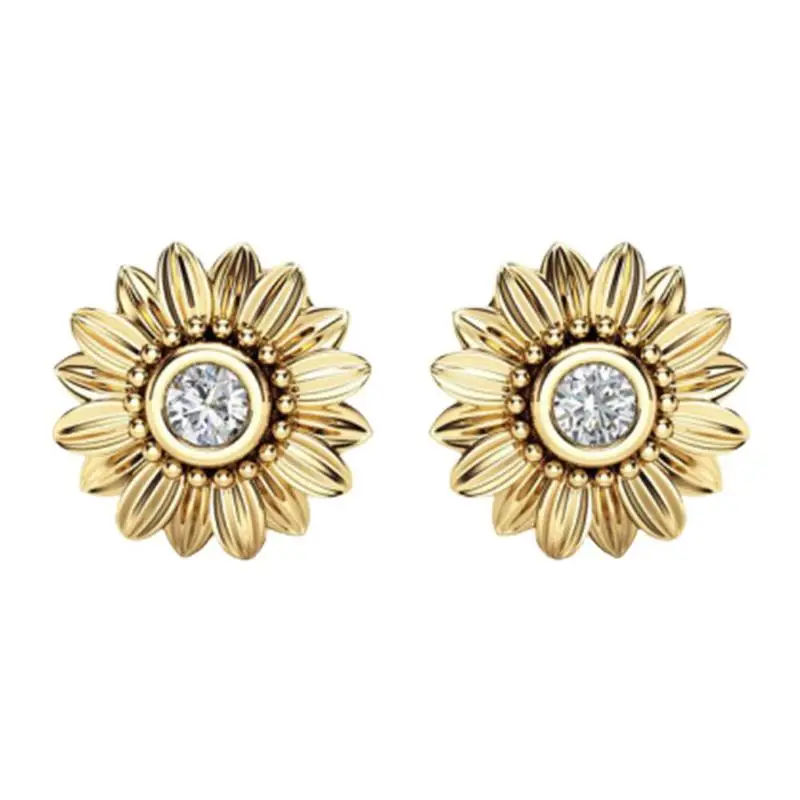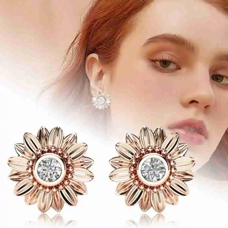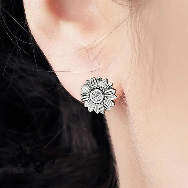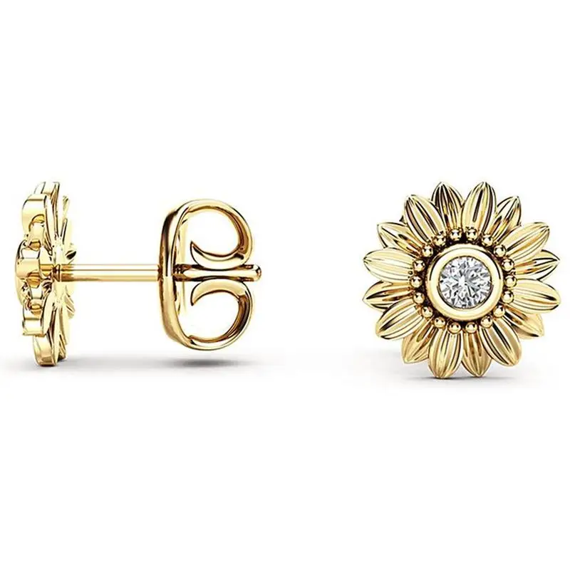 1 пара Золотой Цвет подсолнухи серьги для женщин милые простота Стиль Дейзи цветок Мода пружинный зажим, фиксирующий штифт серьги-гвоздики