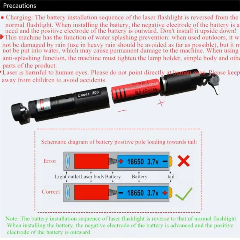 4. Если вы обнаружите, что яркость лазерного луча значительно снижена, пожалуйста, обратите внимание на зарядку или замену аккумулятора.