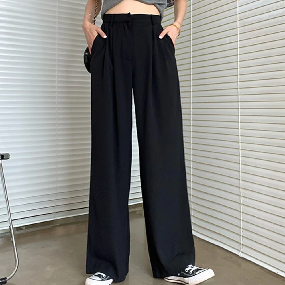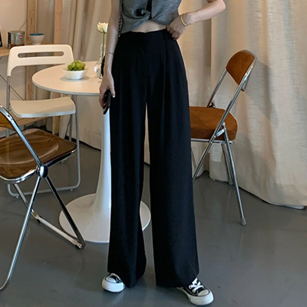 Брюки женские с широкими штанинами стильные полосатые штаны эластичным поясом