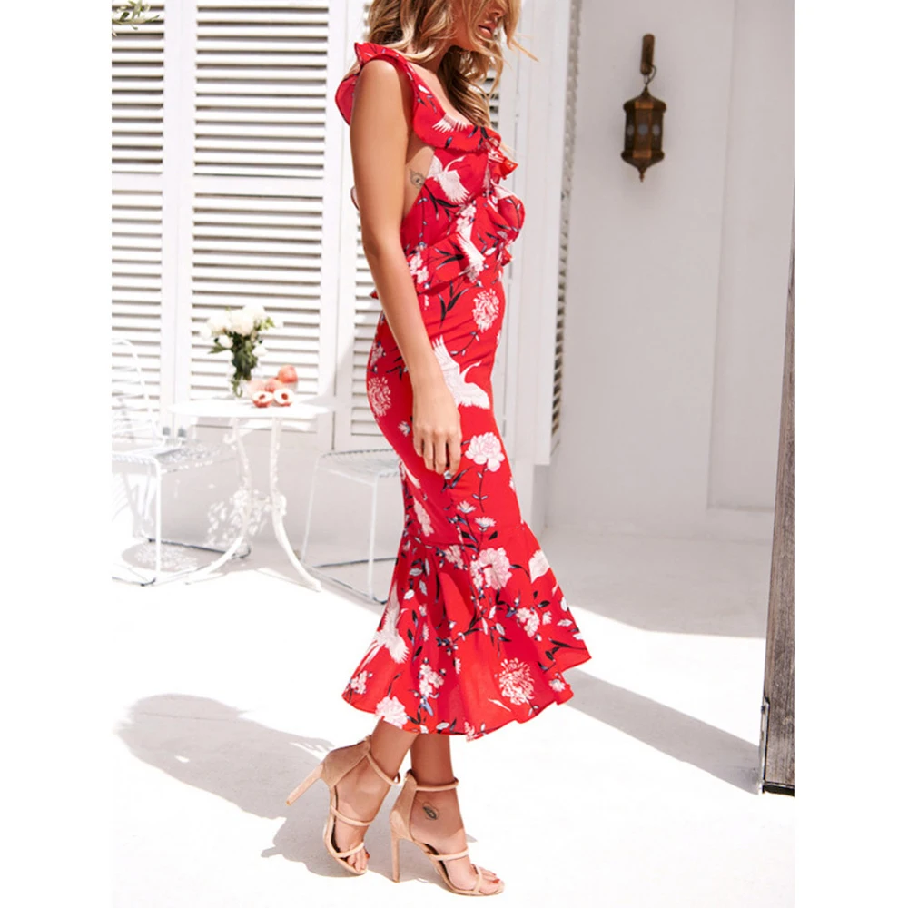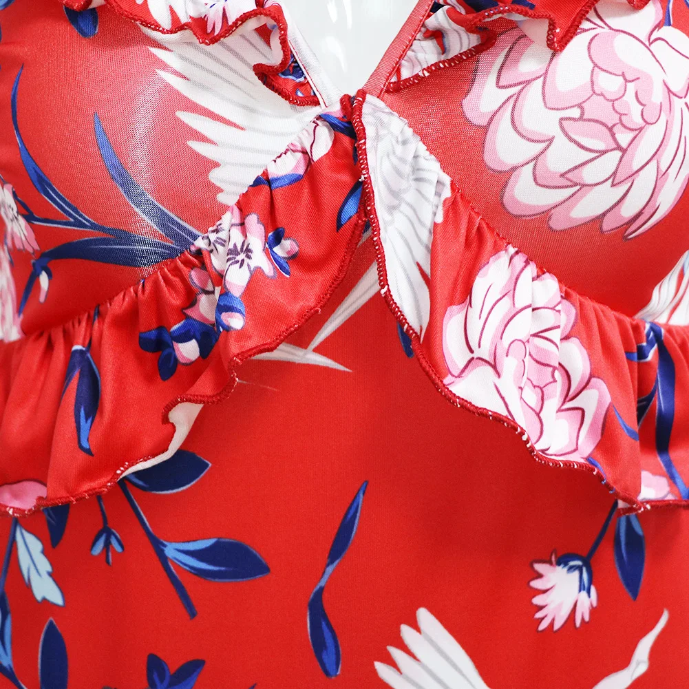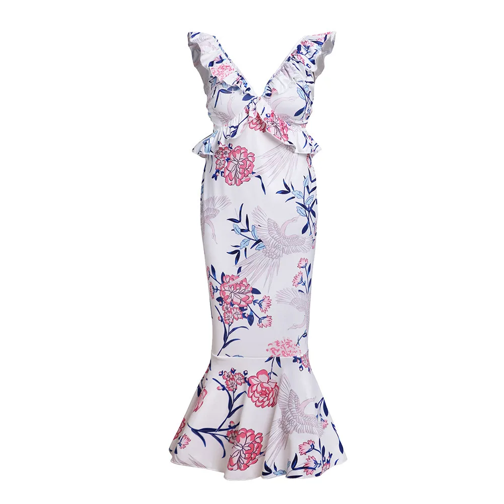 AIMENUNU сексуальное женское платье с рюшами 2020 туника с высокой талией вечерние с v-образным вырезом повседневное пляжное женское летнее платье в стиле бохо с цветочным рисунком