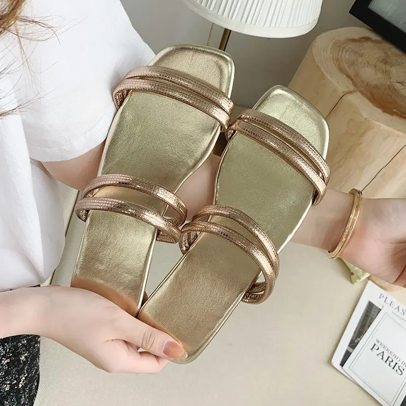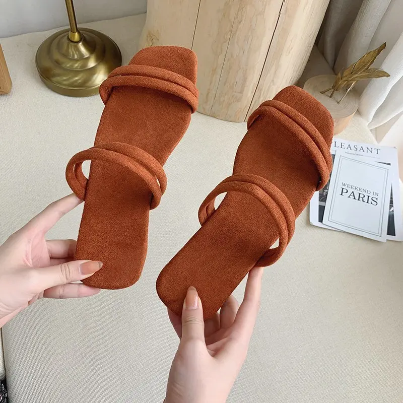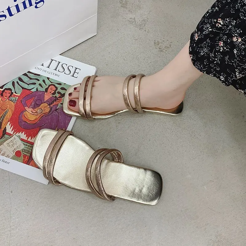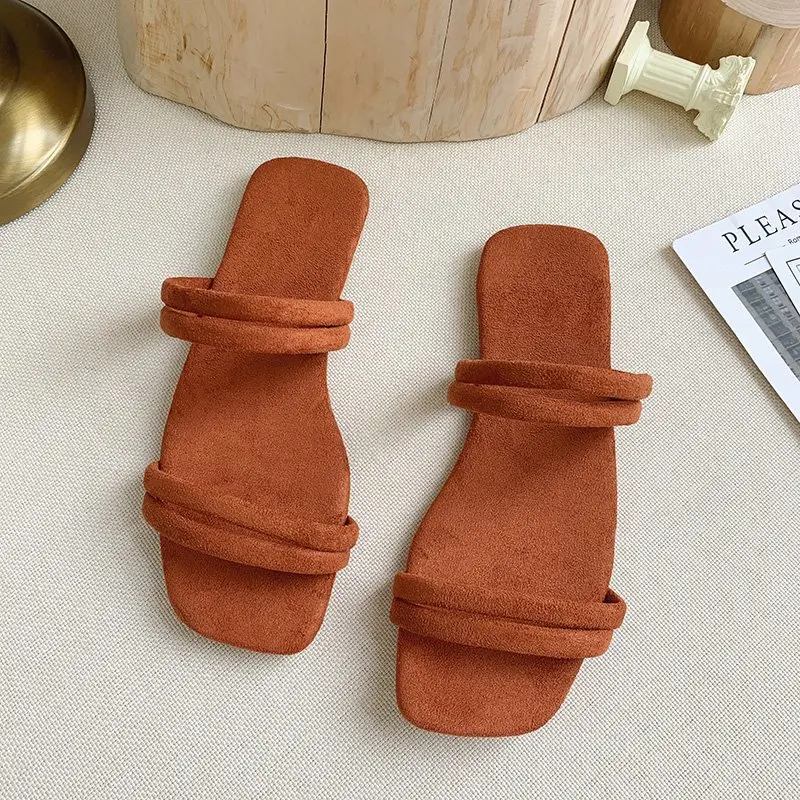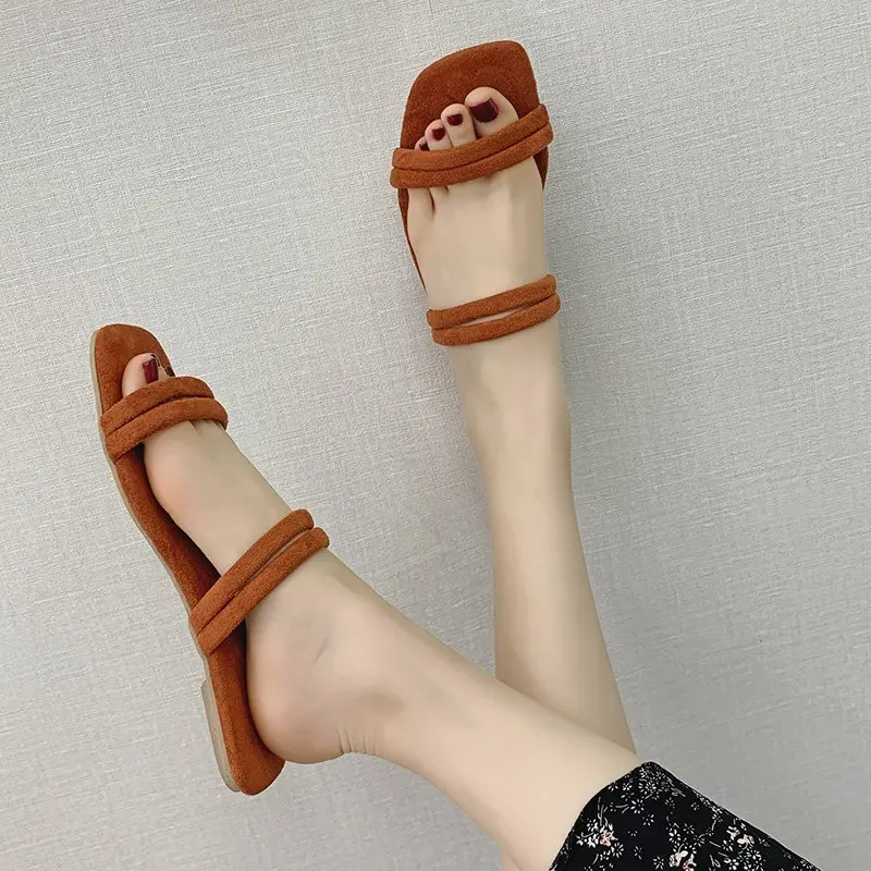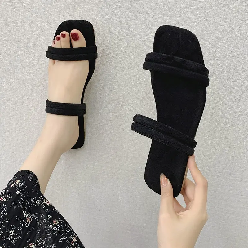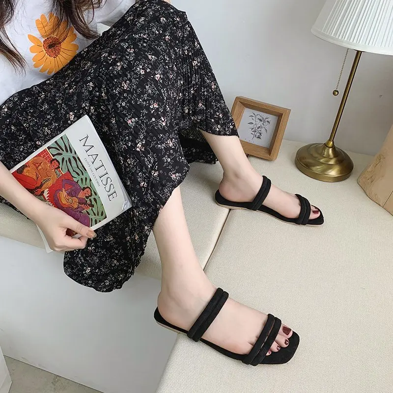 Женские шлепанцы; Удобные однотонные тапочки на плоской подошве; Женская обувь для женщин; Пляжные шлепанцы с открытым носком; Женские летние шлепанцы на плоской подошве