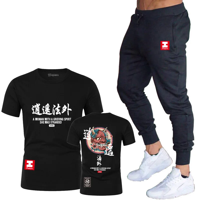 Новая парная уличная одежда в японском стиле Харадзюку городской стиль футболка с коротким рукавом костюм хип-хоп Повседневная Хлопковая мужская футболка большого размера